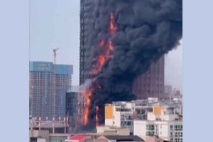Massive fire engulfs a high-rise building in southern Chinese city