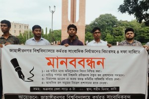 Journalist tortured in JU, human chain for 4 demands