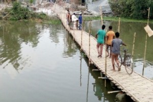 Locals construct bamboo bridge for temporary communication
