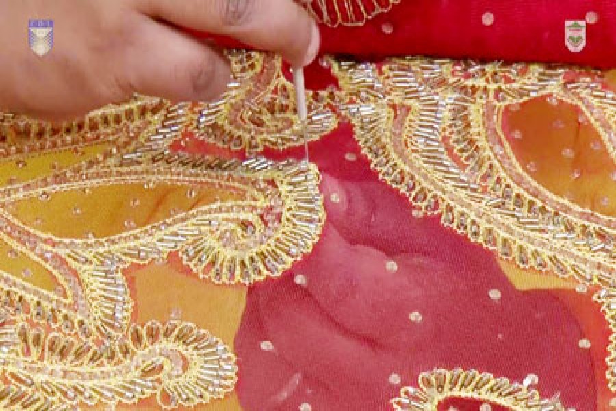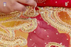 rural craftswomen busy doing needlework before eid