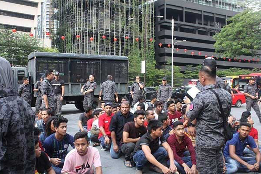 The immigration department examined the documents of 535 foreign workers and detained 123 people during the police operation on Tuesday in Kuala Lumpur city centre.