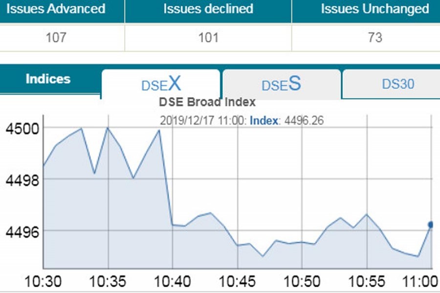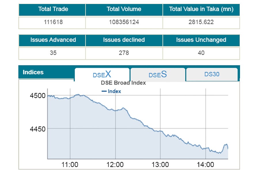 The benchmark index of Dhaka Stock Exchange (DSE) fell below...