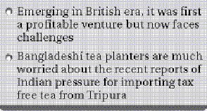 On the other hand, Bangladeshi tea planters are much worried about the recent reports of Indian pressure for importing tax free tea from Tripura. It would just put the industry in severe crisis, a number of senior officials of tea estates apprehend.