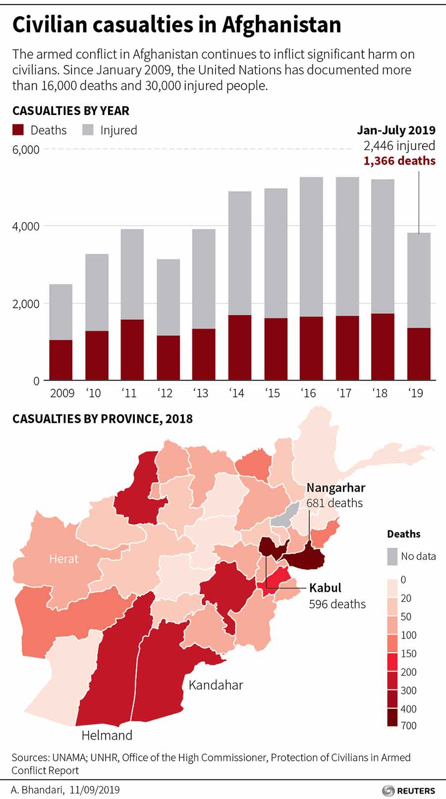 The United Nations says nearly 4,000 civilians were killed or wounded in the first half of the year. That included a big increase in casualties inflicted by government and US-led foreign forces.
